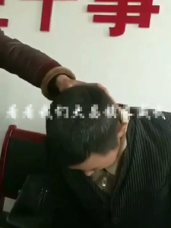 60岁的李泽龙被人强行按头鞠躬道歉视频截图