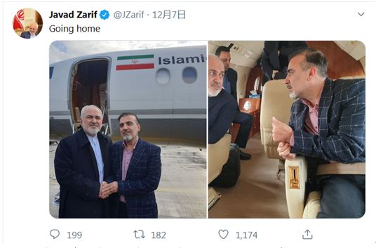 扎里夫(左)在推特上发与苏莱曼尼合影并配文“回家”图源:扎里夫推特
