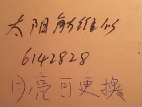 网上广为流传的“太阳能维修月亮可更换”是一个非常搞笑的梗,其实我们都知道在小区的楼道或者墙壁上,会有“太阳能维修”的广告语,而不知道是谁灵机一动,在“太阳能维修”后面加了一句“月亮可更换”,瞬间就变成了一句十分温暖调皮的话,后来这句话变成了“太阳能维修,月亮可更换,星星不闪包退换。”变得非常富有诗意和浪漫,因此成为非常受欢迎的一个梗。