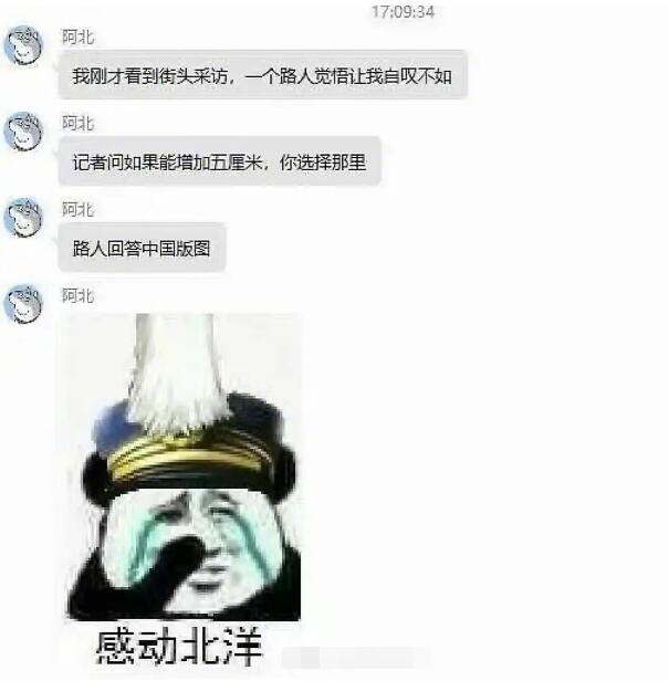 近日,一则街头采访的视频,因为路人的惊人格局登上了微博热搜,记者问:如果能增加五厘米,你选择哪里?路人答:中国版图,这是何等的爱国情操,被网友赞叹感动北洋。