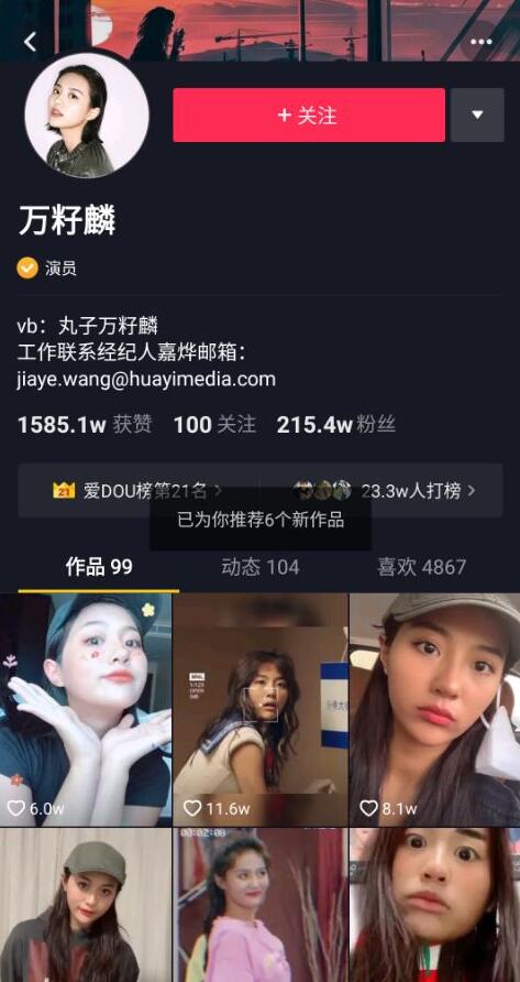 她目前经常在抖音上直播,拍视频,下面是她的直播间
