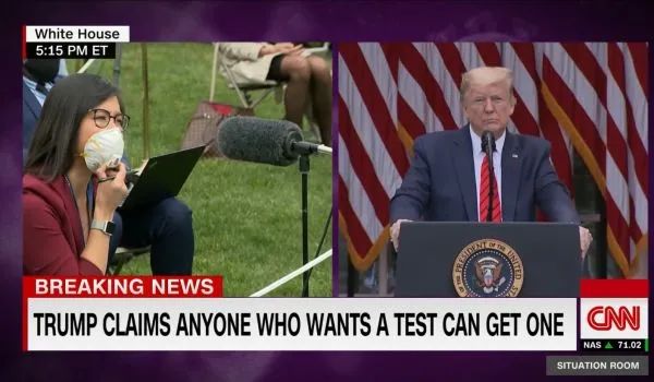 当天的白宫记者会上,一名来自美国哥伦比亚广播公司(CBS)的华裔女记者Weijia Jiang提问特朗普:为什么要反复说起美国在检测方面比其他任何国家都做得好?这很重要吗?