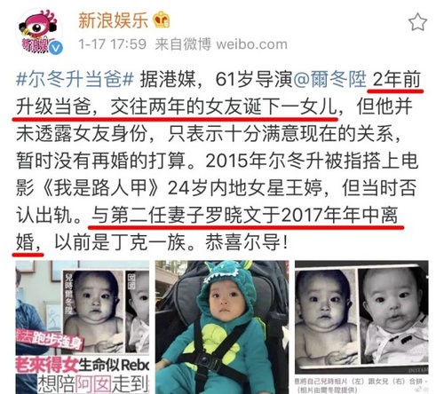 也许是因为长得帅,能赢得美人的芳心,因此尔冬升的感情史也非常丰富,早期的余安安、张曼玉,后来的罗晓文,都让人觉得尔冬升并非良人,果然后来媒体报道了尔冬升和情人生下女儿的消息,让外界一片哗然,因为孩子出生时他还没和妻子罗晓文离婚,消息传出后,尔冬升承认了生子的传闻,但同时他和妻子离婚的消息也被媒体曝出。